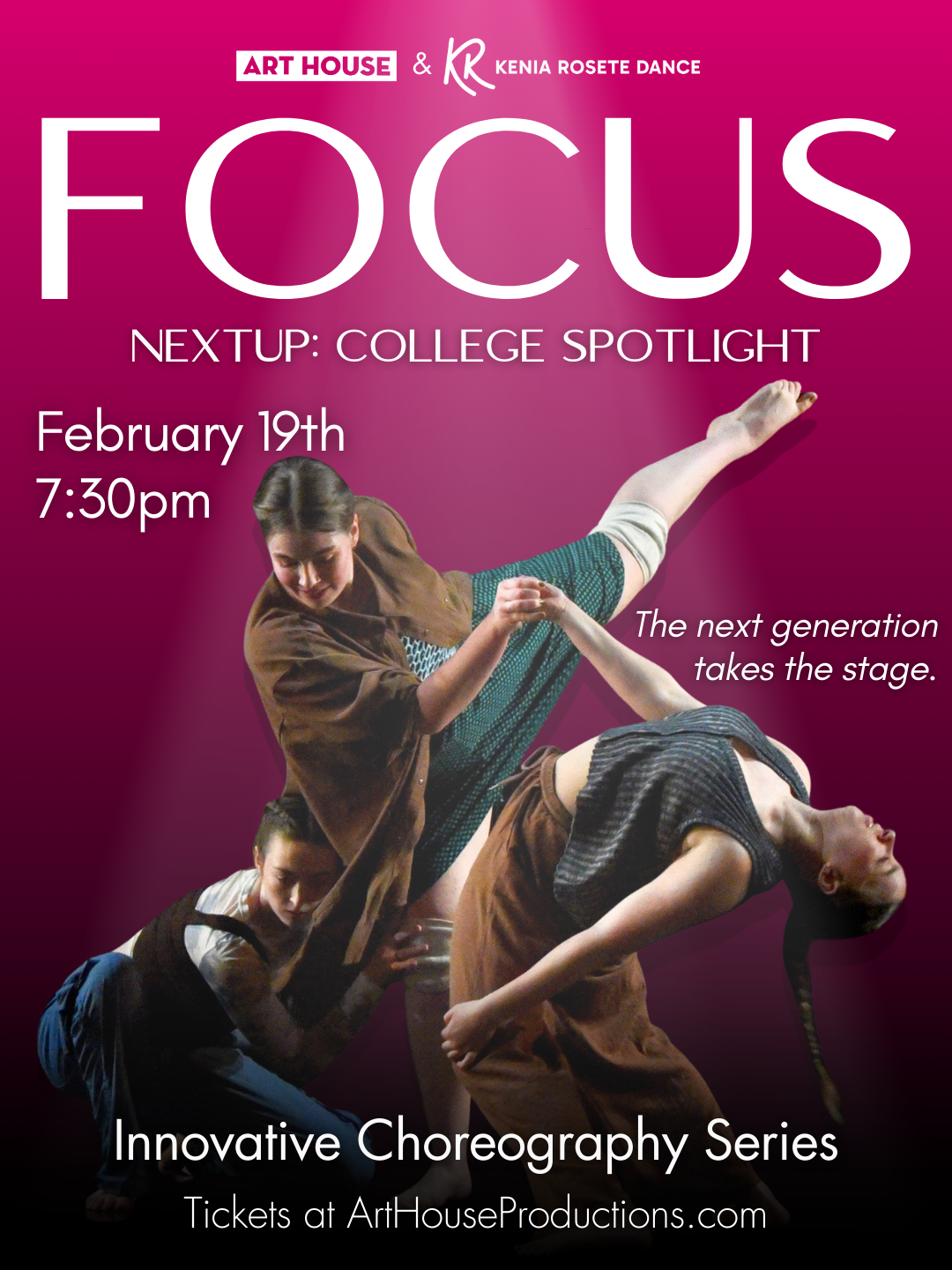 Step into the world of contemporary dance and experience bold, boundary-pushing artistry. FOCUS spotlights the innovation, passion, and transformative power of movement in a shared evening of work by standout choreographers—an ongoing collaboration between Kenia Rosete Dance and Art House Productions to bring more dance to New Jersey and the greater NY Metro area.